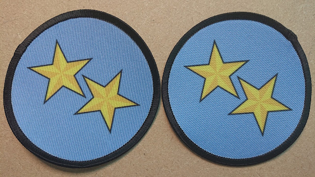 Using Affinity Designer, I updated the file that I had printed to use as a stencil for my own attempt. I was also able to take a little shortcut, as the software comes with included images to use. Very luckily for me they included this very star. I just went into the star document, made some alterations to the colours and made sure all the pieces aligned properly, ready for printing. I found a different seller on Etsy who offered custom patches and they came out great!