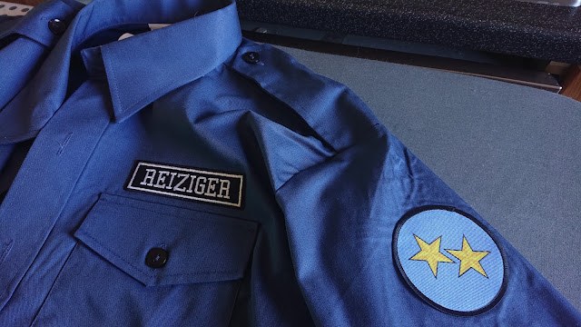 The name patch mentioned in Part One arrived, and with it the reveal of who this particular uniform will be for: Chief Superintendent Reiziger. With these videos, I don’t think I could convincingly play a woman in her early 20’s (30’s maybe…I was mistaken for a woman once after all, when I had long hair..) so instead this uniform goes to her dad. I had originally asked for a completely black border when I placed the order. Other customers had posted images of it, and I had been messaging the seller and it was all OK’d. I even included the request in the description, which the seller had also asked me to do. And then got a white border. But it looks great, so I don’t mind. I had gone back and forth to begin with, so potato, potahto (but who says potahto?)